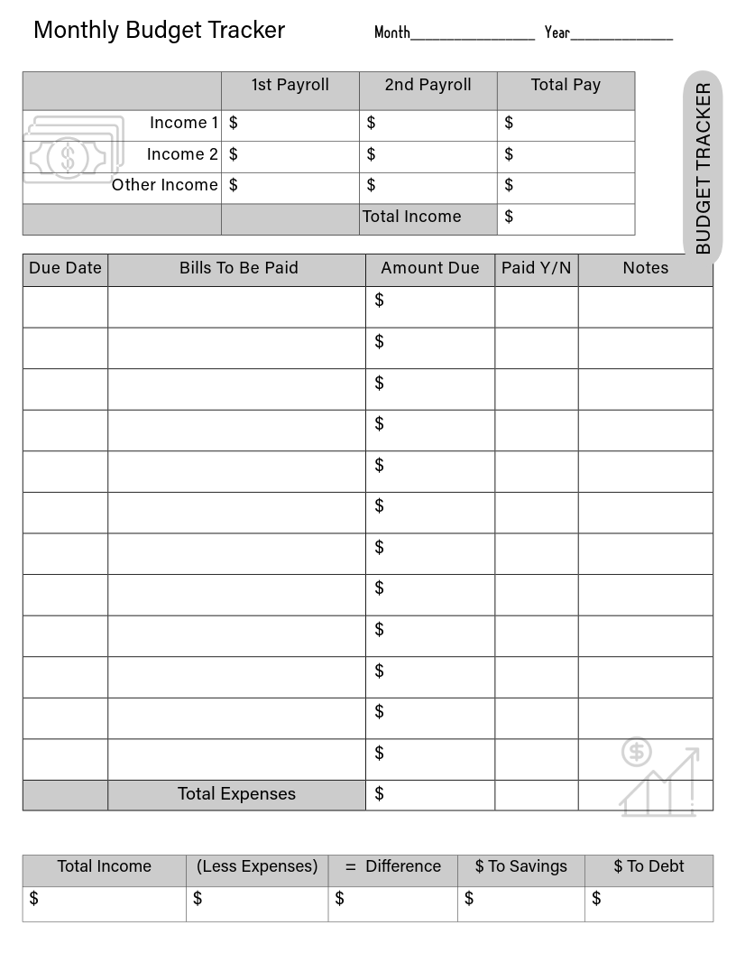 This Amazing 48-month bill payment tracker and budget book is perfect for managing the family finances. Stay organized and never miss a payment with our easy to use, large format monthly bill payment and budget trackers. Learn how to create and stick to a monthly budget, pay off debt quickly and build an emergency savings.